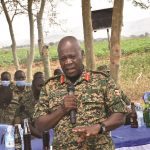 - UPDF’s Chief of Production and Welfare (CPW) Maj Gen Sam Kiwanuka speaking in Bulambuli District during the tour to the UPDF-CPW Katta farm by the Defence Ministers
