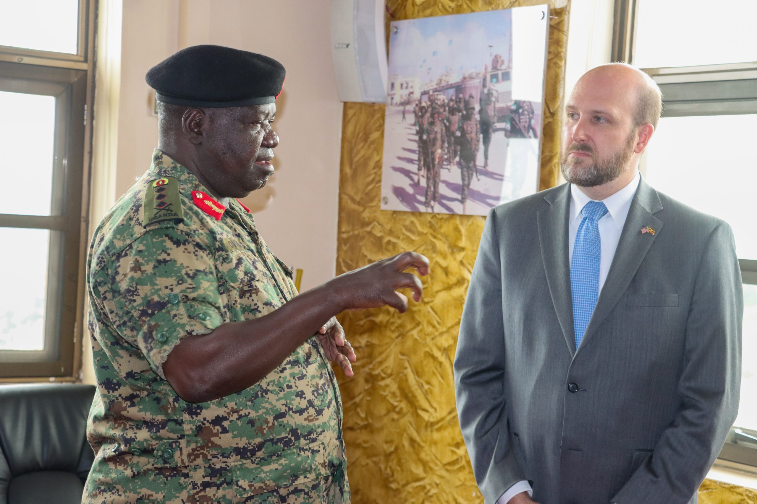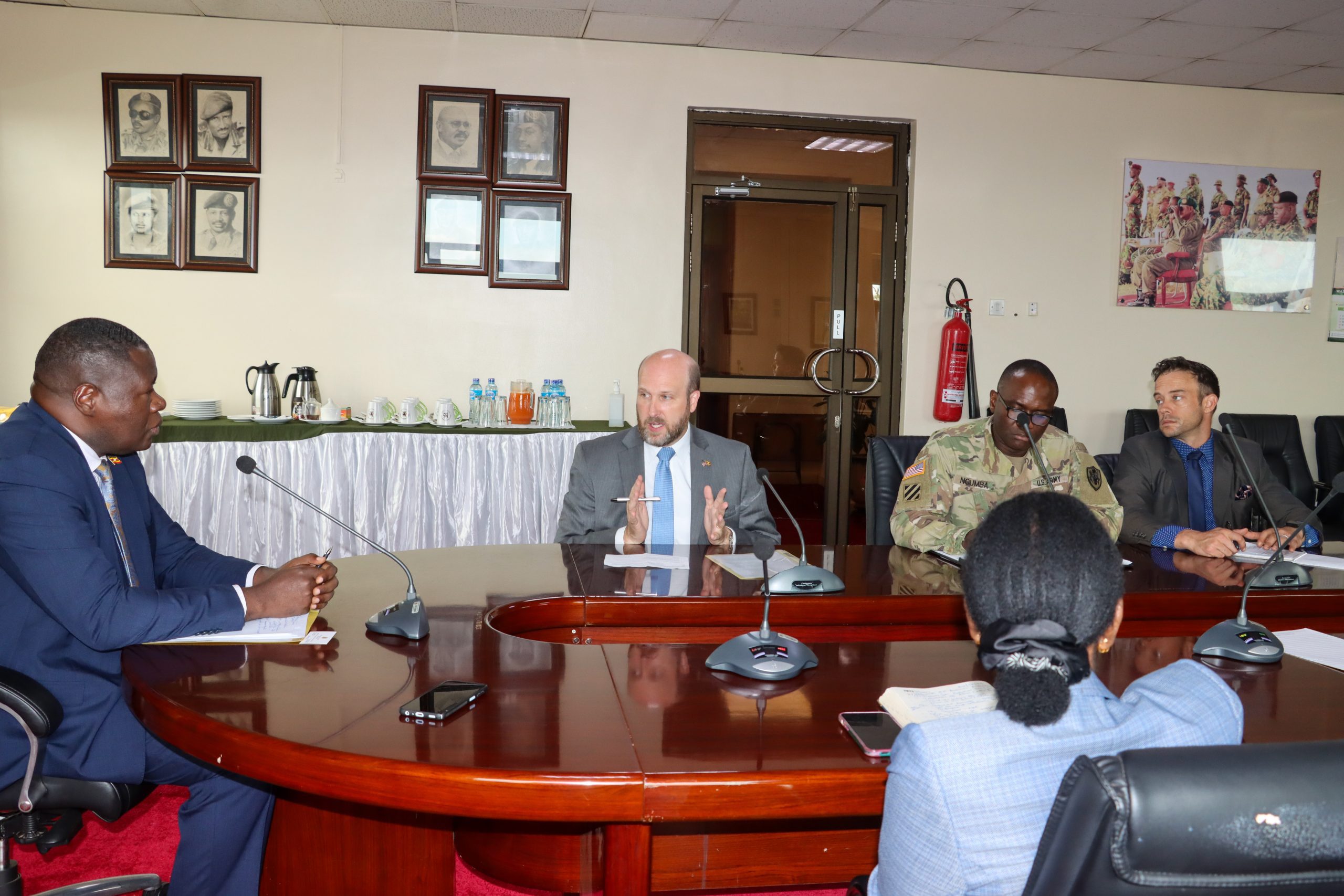 The Minister for Defence and Veteran Affairs, the Hon. Jacob Marksons Oboth, met with the United States Ambassador to Uganda, William W. Popp, today at the Ministry of Defence and Veteran Affairs Headquarters in Mbuya.