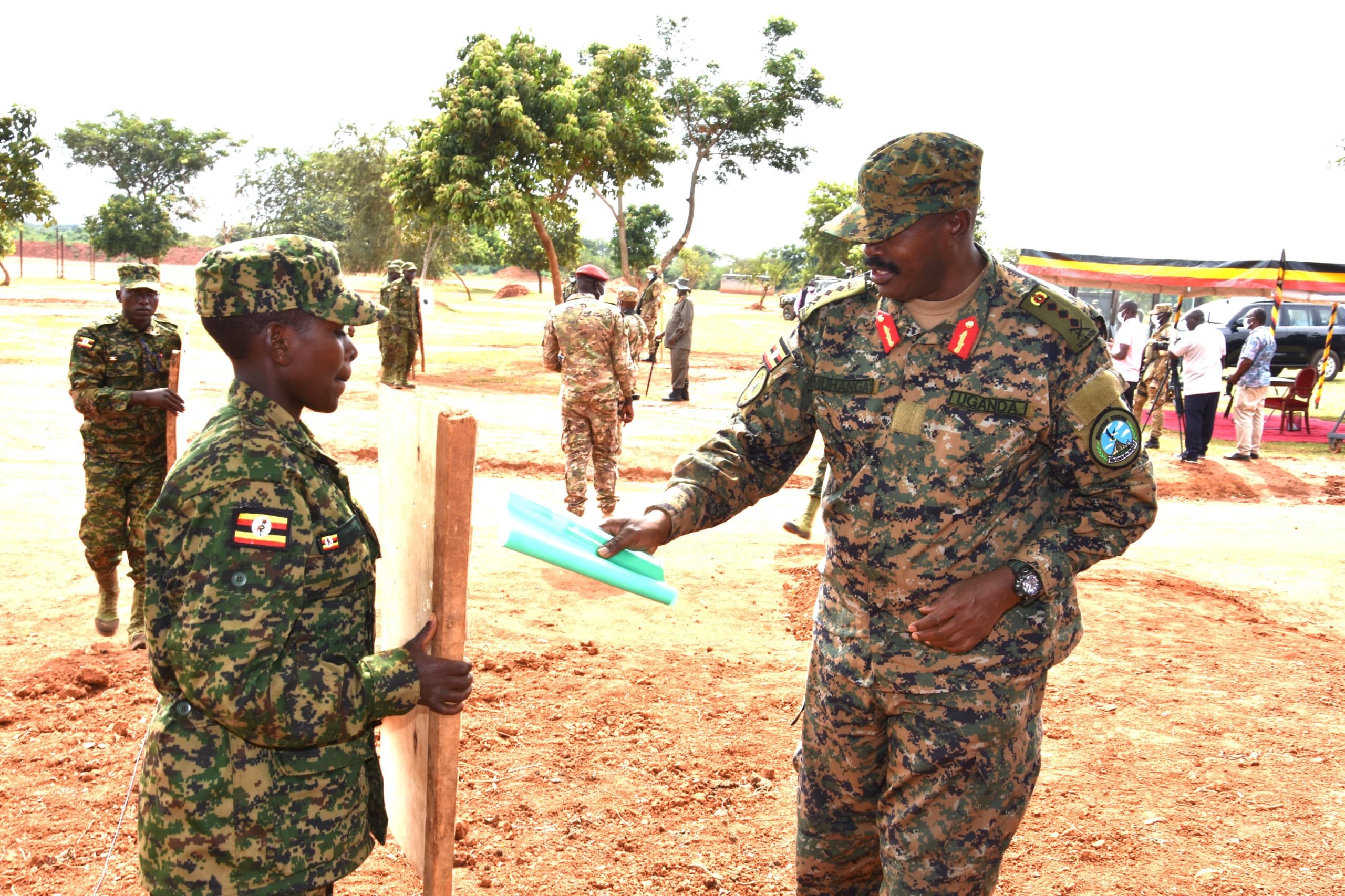 Present at the pass-out were Mrs. Edith Butuuro, the Undersecretary for Finance and Administration; Lt Gen James Mugira, the Managing Director of National Enterprise Corporation; Maj Gen Don Nabasa, the 3 Infantry Division Commander; Generals, Representatives from sister security forces, District leaders, among others.