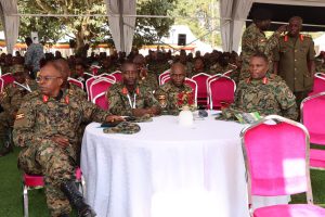 Present were: the First Lady and Minister of Education and Sports, Hon. Janet Kataaha Museveni; Minister of State for Defence and Veteran Affairs (Veteran Affairs), Hon. Huda Abason Oleru; Religious leaders; Director External Security Organisation, Ambassador. Joseph Ocwet; Under Secretary Finance and Administration, Mrs. Edith Buturo; Commander Air Force, Lt Gen Charles Okidi; Deputy Commander Land Force, Maj Gen Francis Takirwa; Division Commanders, Service Chiefs of Staff, Joint Staffs, Generals, Retired Generals, Senior Officers, and Junior Officers, among others.