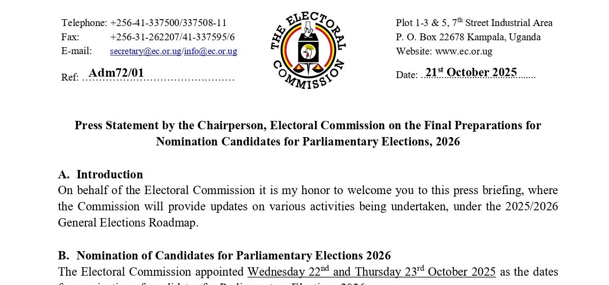The Electoral Commission appointed Wednesday 22nd and Thursday 23rd October 2025 as the dates for nomination of candidates for Parliamentary Elections 2026.