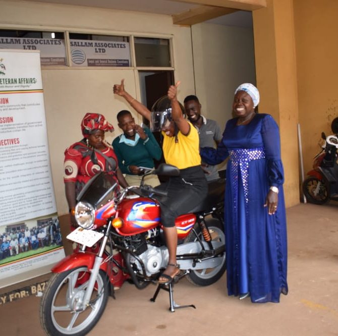The Minister of State for Defence in charge of Veteran Affairs (MSDVA) Hon. Oleru Huda has today donated a motorcycle to Lwengo Tweyambe Women’s and Orphans Veterans SACCO.